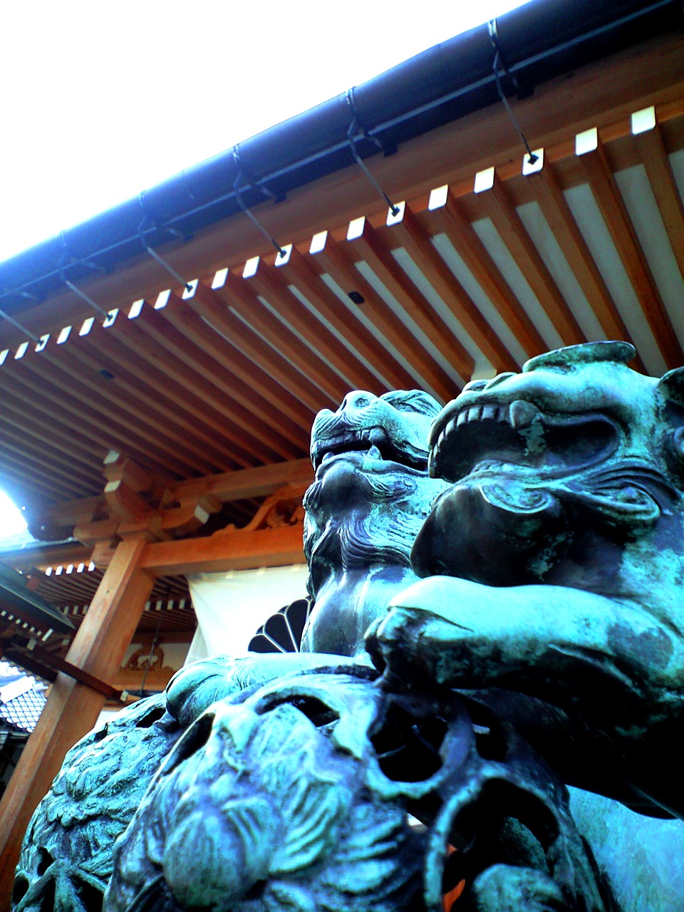 寒獅子の 背にぞ騒めく 秋の杜 共に仰ぐは 淡き青月